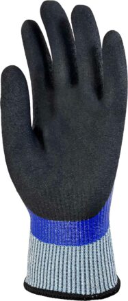 Gant support tricoté UHMWPE jauge 13/fibre de verre/ fil polyester/ fil spandex tout enduit nitrile + surcouche nitrile adhérisé sur paume et bouts de doigts.